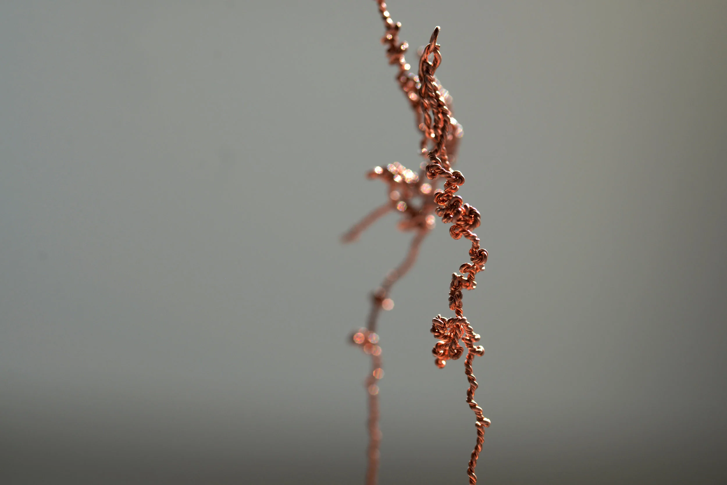 Appreciated solely for its monetary value in the scrapping industry, Dead Wire places emphasis on the physical composition of copper. The metal is rich in color, glistens in the light, and has the ability to hold its shape when bent. Similar to the exploitation scrapping has done to Detroit, the copper wire has been hyper-twisted and exploited beyond its original physical composition. Delicate yet aggressive, Dead Wire exposes the tedious and detrimental world of scrapping.