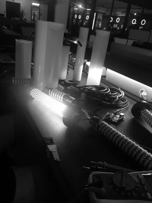 ‘Heartfelt’, one of the six installations, comprises a total of thirty-seven vertical metal poles arranged into two concentric heart shapes. Each pole contains a tube LED light. The light is activated when a person holds on to two poles, posing as a human conductor, and in turn closing the circuit which lights the installation up. The cluster of poles allows participants to move through the installation and discover different ways to engage and interact with ‘lighting up’ the project.